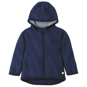Lækker marineblå jakke med lynlås og hætte fra DISANA.