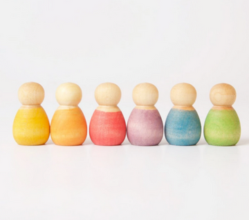6 stk. søde træbaby´er i smukke farver fra spanske Grapat.