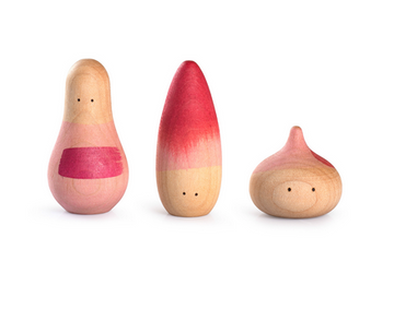 Figurerne er sirligt håndmalet i rødlige og rosa nuancer. Ekstremt lækre at røre ved og vil indgå i et hav af lege