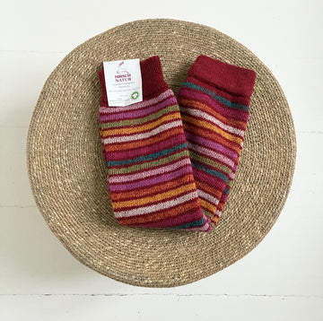 Gode benvarmere til voksne, fra tyske Hirsch her i rød med en masse skønne farvede striber