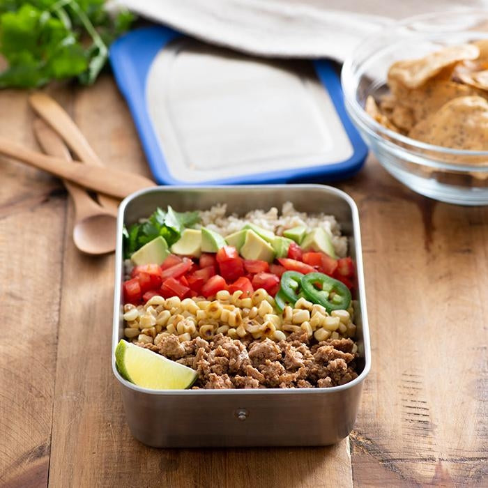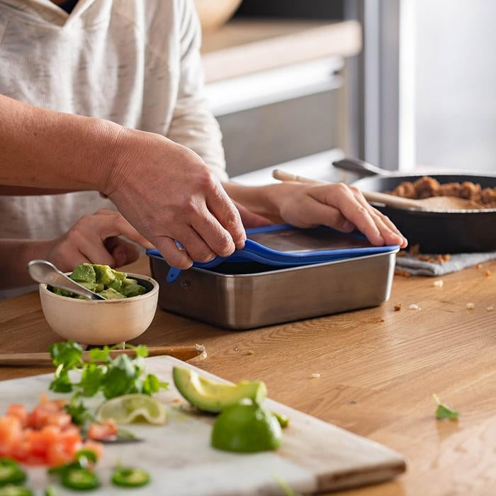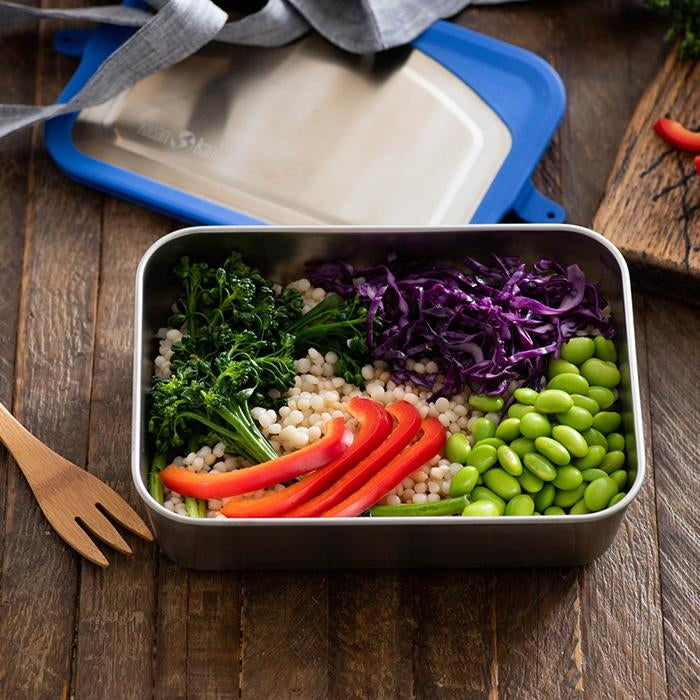 Gedigen og lækker madkasse i stål med låg, lavet af fødevare godkendt silicone