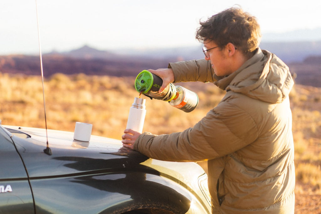 TKPRO-modellen, har justerbart hældelåg, dette vil sige, at du kan hælde de varme drikke op, uden at skrue låget helt af. De små 'dupper' i genvindet gør det muligt.