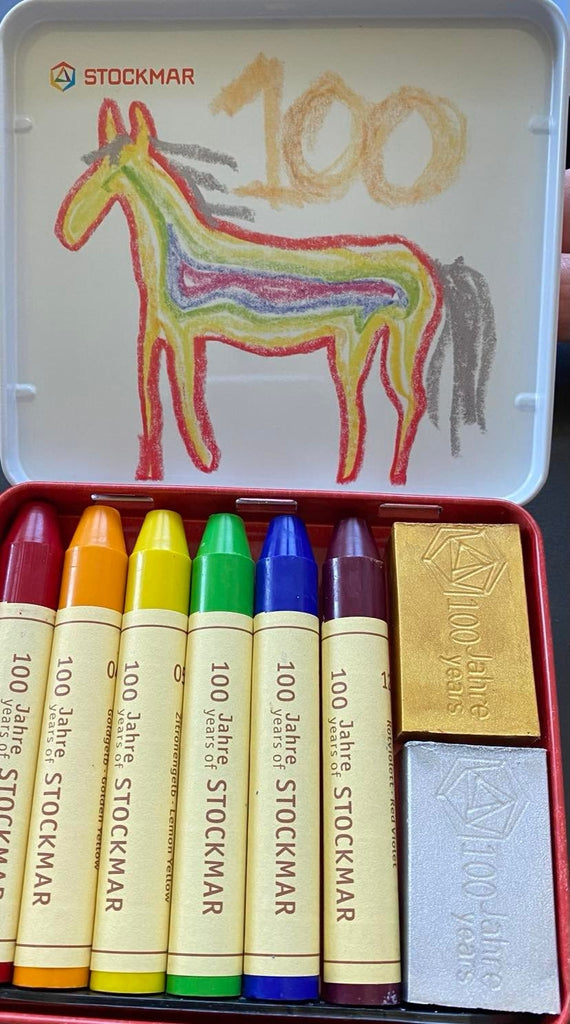 I anledning af Stockmar´s 100 års jubilæum har de lavet en special edition, som består af 6 stifter og 2 blokke.