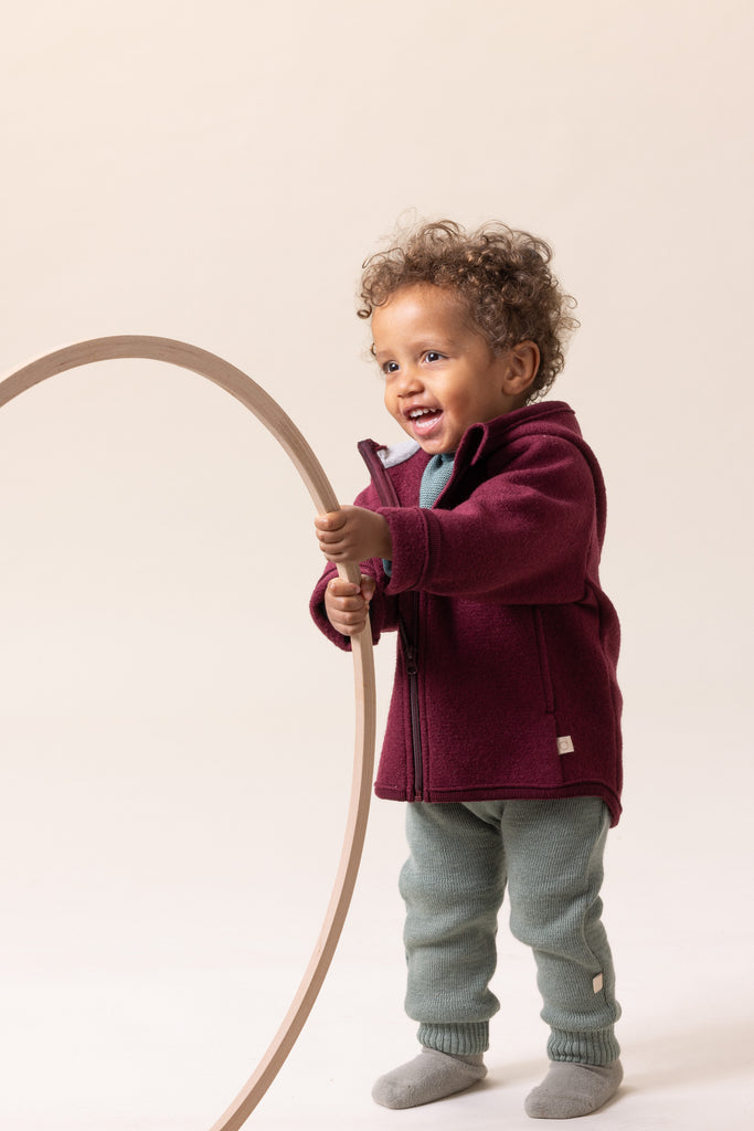 Jakken er lavet af GOTS certificeret økologisk merino uld.