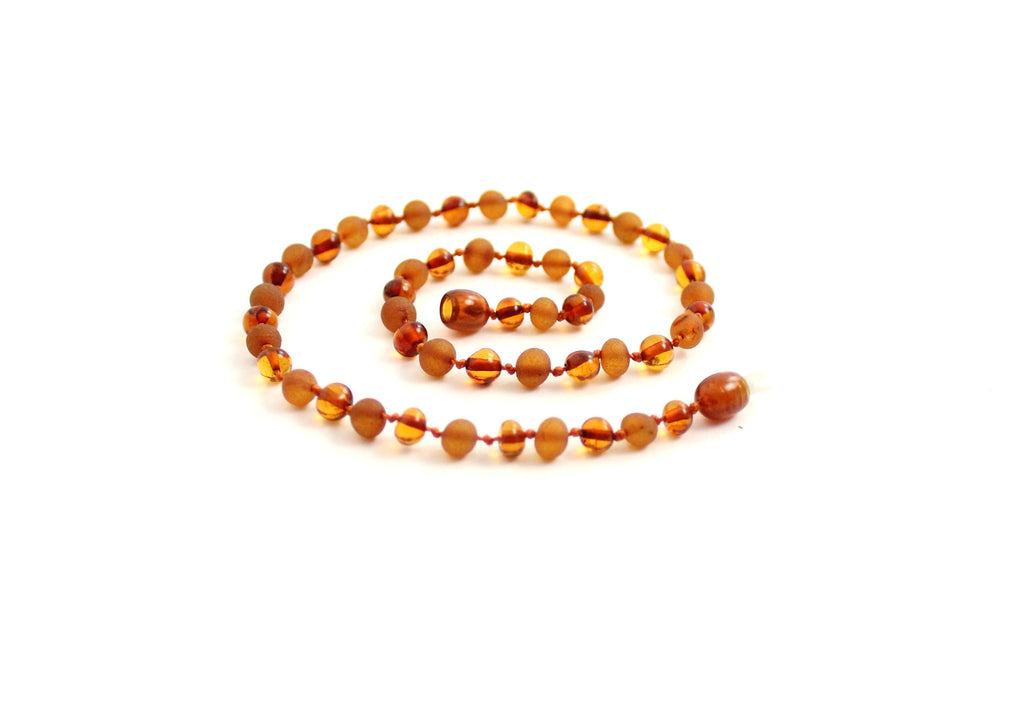 Rav halskæde - voksen - mat & poleret cognac - 55 cm.
