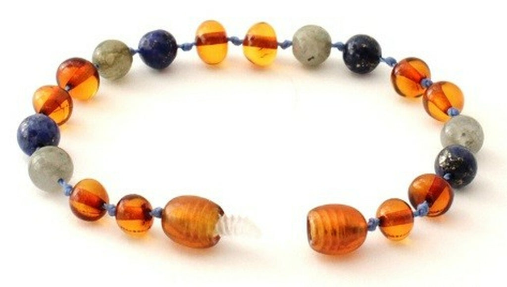 rav armbånd - baby & barn - poleret cognac-lapis lazuli & labradorite