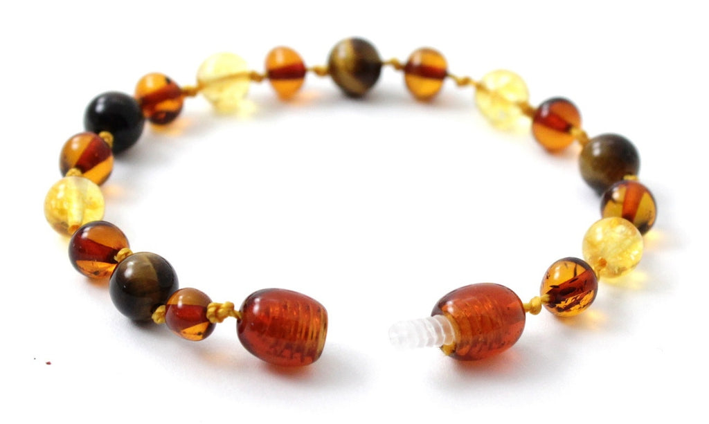 Rav armbånd - større børn - cognac - tigerøje & citrin