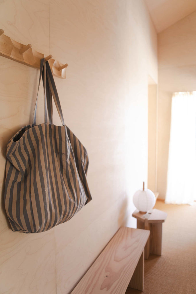 Skøn taske/tote bag, fra Studio Feder i en smuk stribet udgave i støvet blå og sandfarvet
