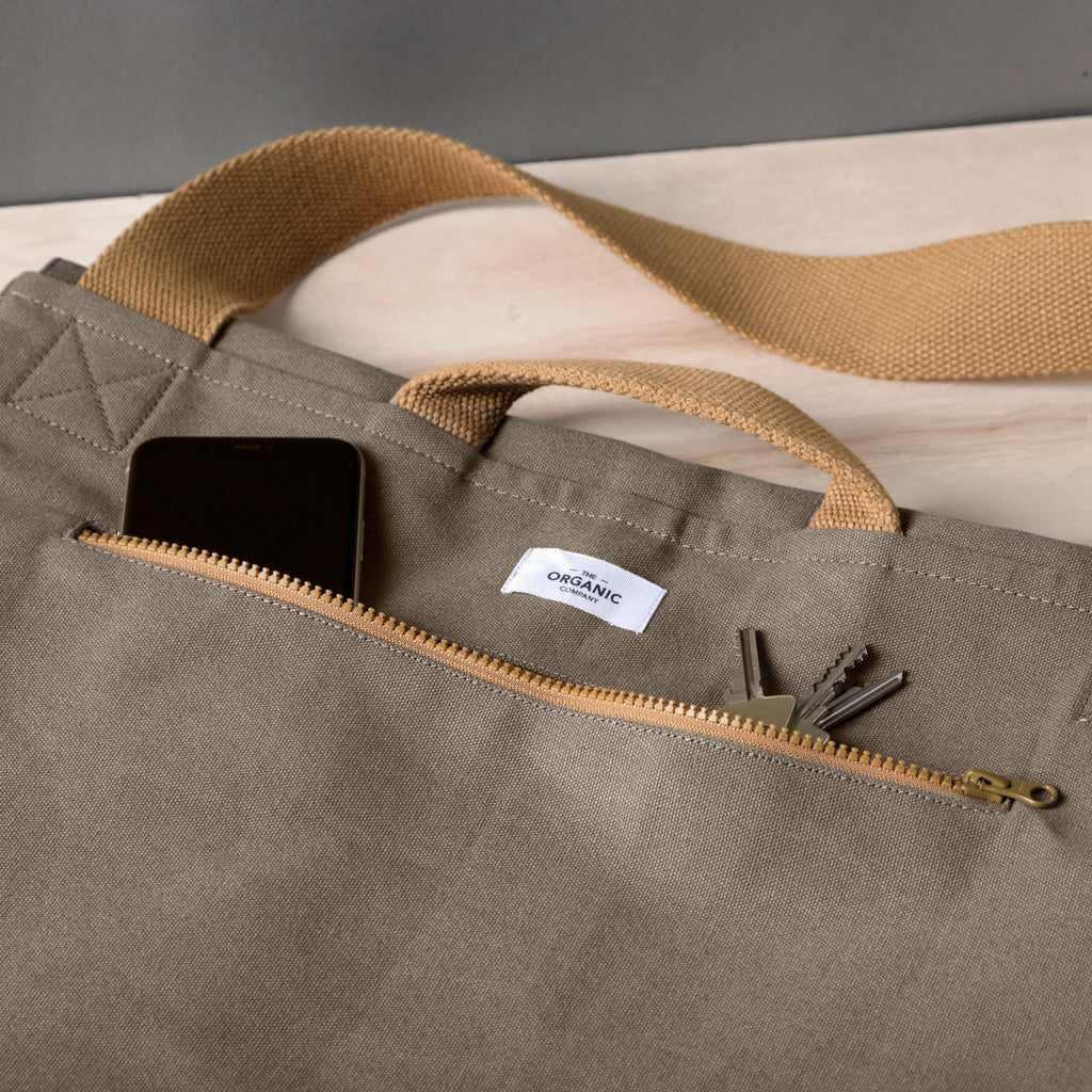 Suveræn lækker stor skuldertaske fra The Organic Company i 100% GOTS certificeret økologisk bomuldscanvas, i en smuk sandfarvet udgave