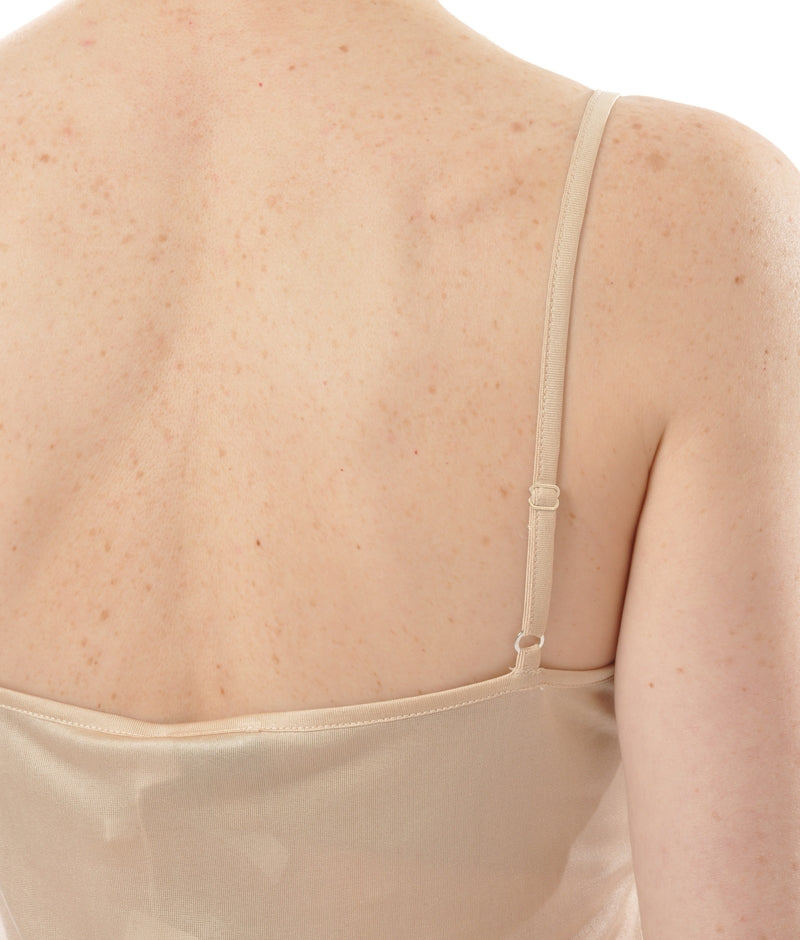 Underkjole eller natkjole i 100% GOTS certificeret økologisk silke fra Alkena. Farven er nude og perfekt under lysere kjoler.