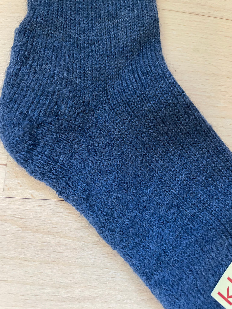 Lækre varme uldsokker med ekstra længde fra tyske Hirsch i en jeansfarvet udgave.