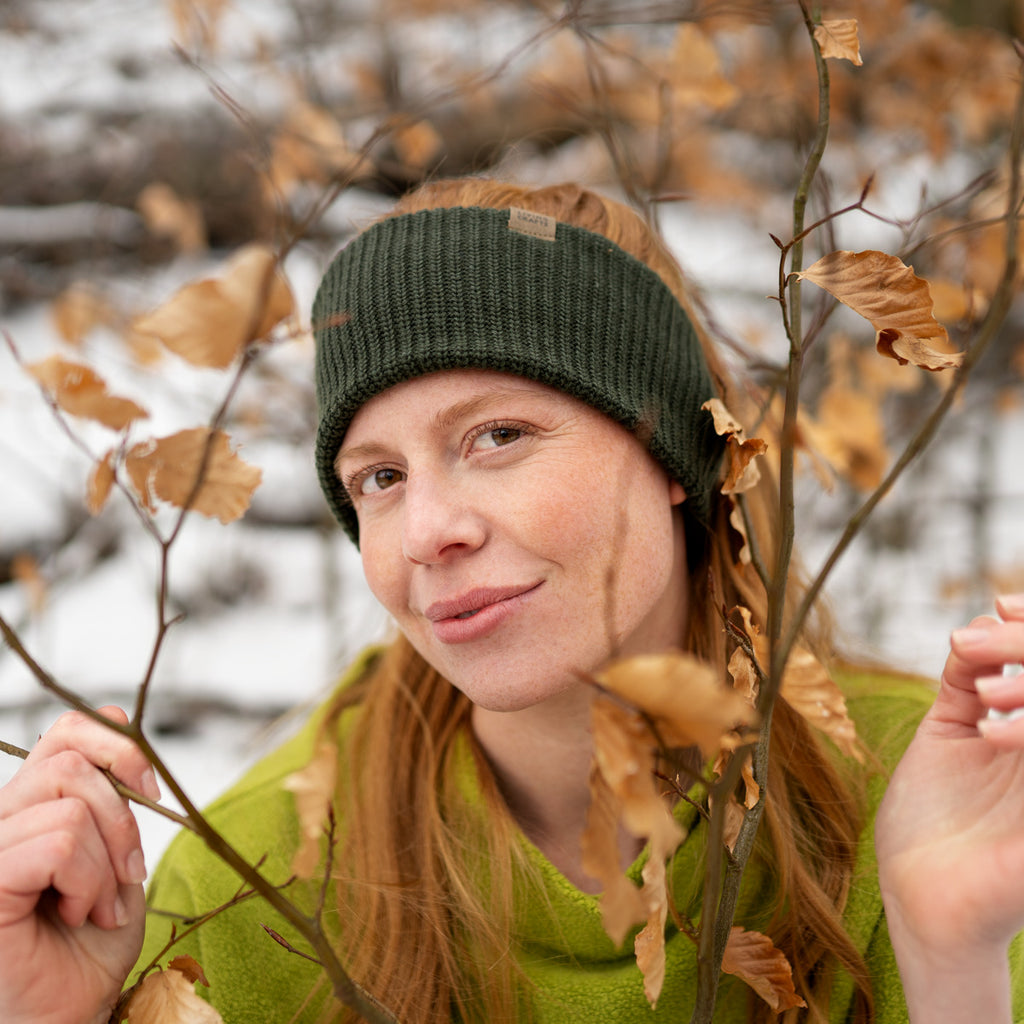 Living Crafts - hårbånd - uld & bomuld - oliven