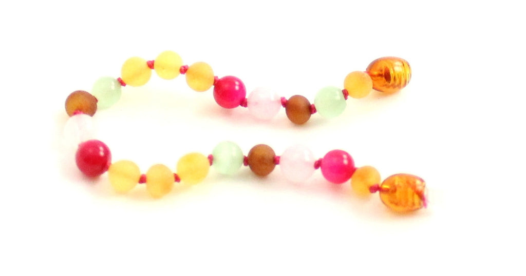 Smukt lille armbånd til baby og børn i raw honey, quartz, agat & cateye