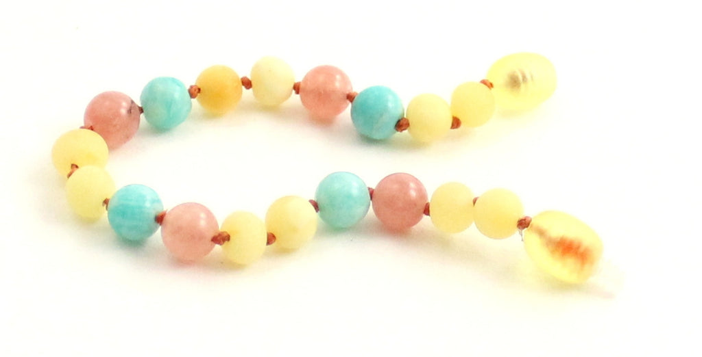 rav armbånd - baby & barn - raw milky - amazonite & sunstone