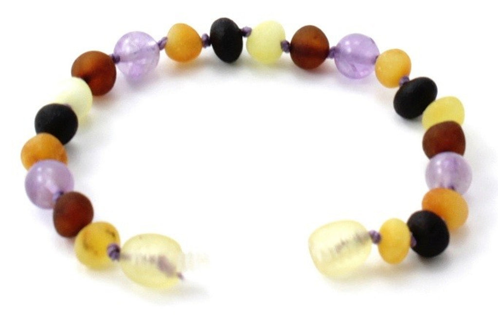 Smukt lille armbånd til baby og børn i raw multi sammen med poleret amethyst