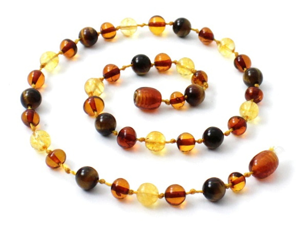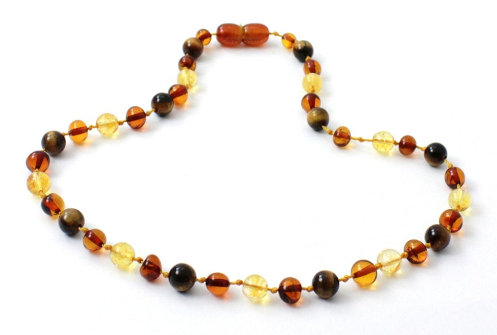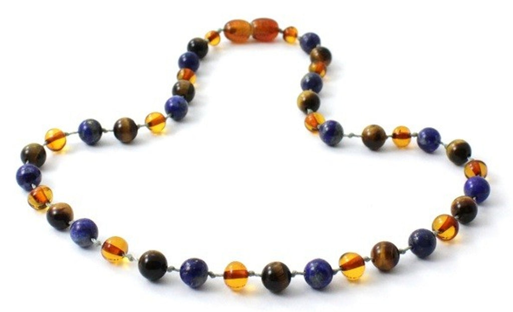 Rav halskæde - baby & barn - cognac - lapis lazuli & tigerøje