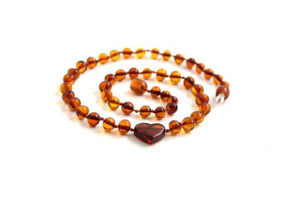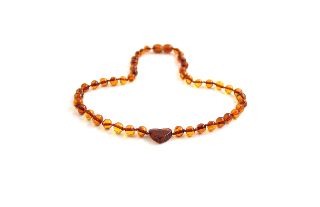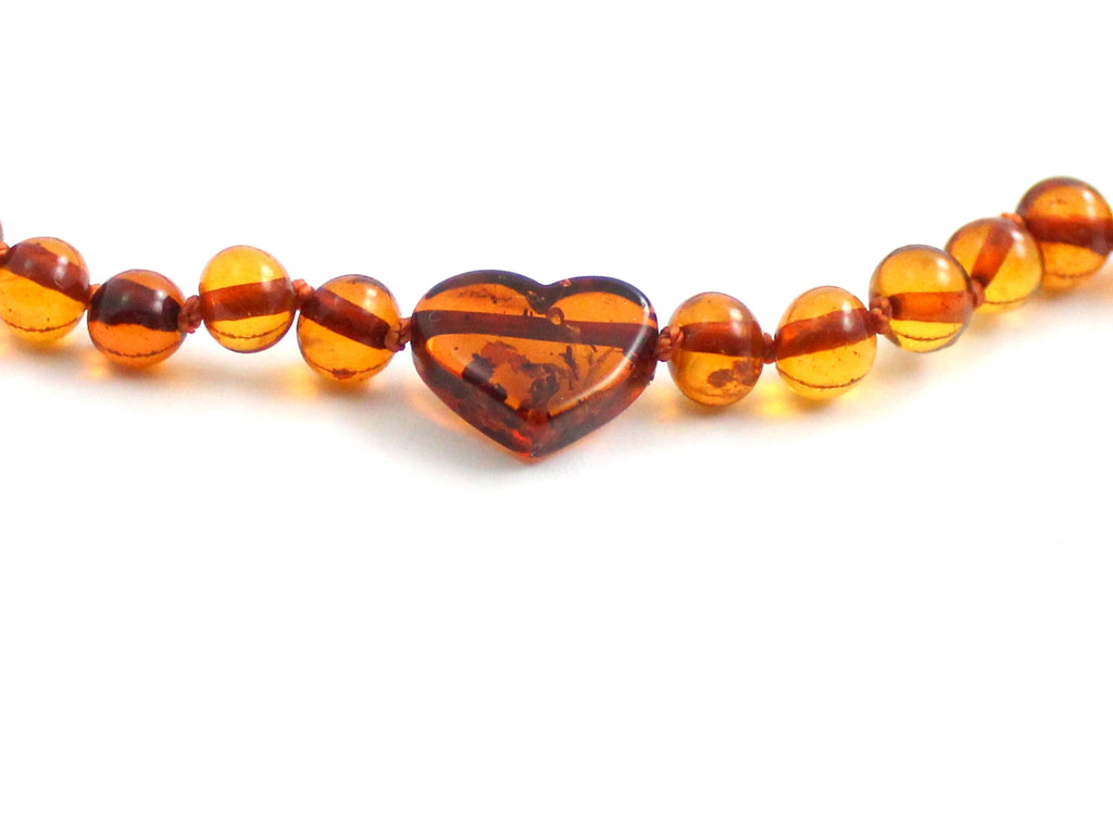 Rav halskæde - baby & barn - poleret cognac med ravhjerte
