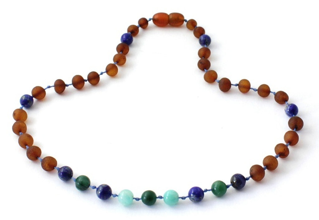 rav halskæde - baby & barn - raw cognac-jade-lapis lazuli & amazonit